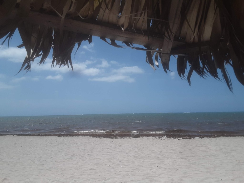 Cabanas made from tree trunks and thatch. Our only companions the local fisherman tending to their nets and three stray dogs dozing under our chairs. The coast is thick with dense seaweed; sparking turquoise water just out of reach.